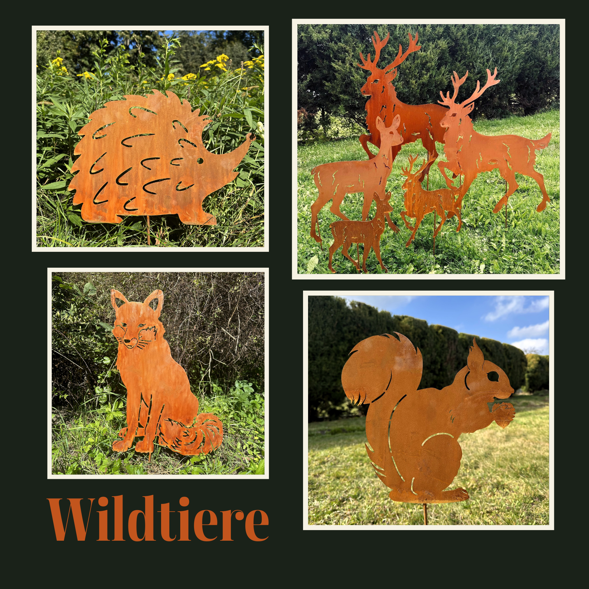 Entdecke unsere vielfältige Tierwelt aus Metall – handgefertigt, wetterfest und mit Liebe in Europa hergestellt.